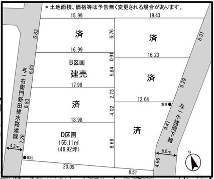 | 間口 | 北西側約4.2m幅の市道に間口が約7.26m接道 |