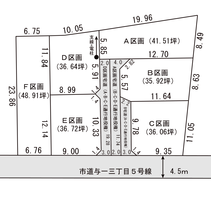 | 間口 | 南東側約4.5m幅の市道に間口が約3.0m接道 | |||