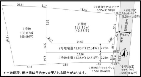 | 間口 | 東側約4.0m幅の市道に間口が約2.26m接道 |