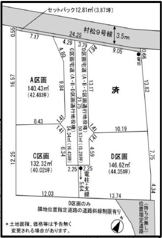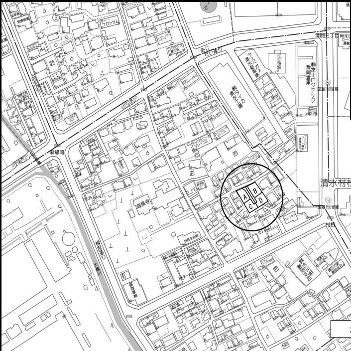| 間口 | 北東側約4.1m幅の宅道に間口が約6.84m接道 |